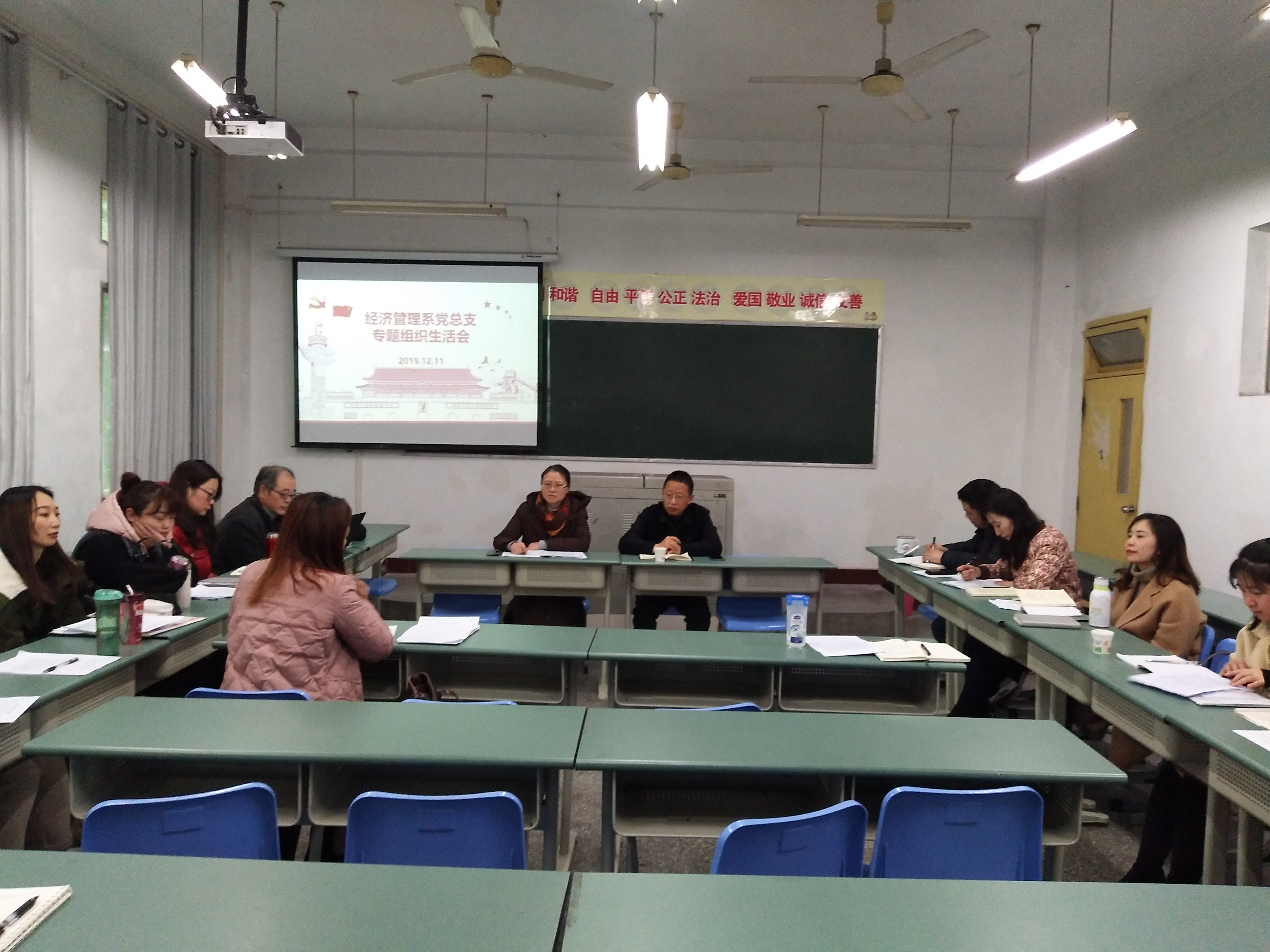 2019年12月11日,经济管理系党总支专题组织生活会在综A201教室召开。学院党委委员、副院长蒲开伦莅临指导,经济管理系党总支全体教师党员参会。