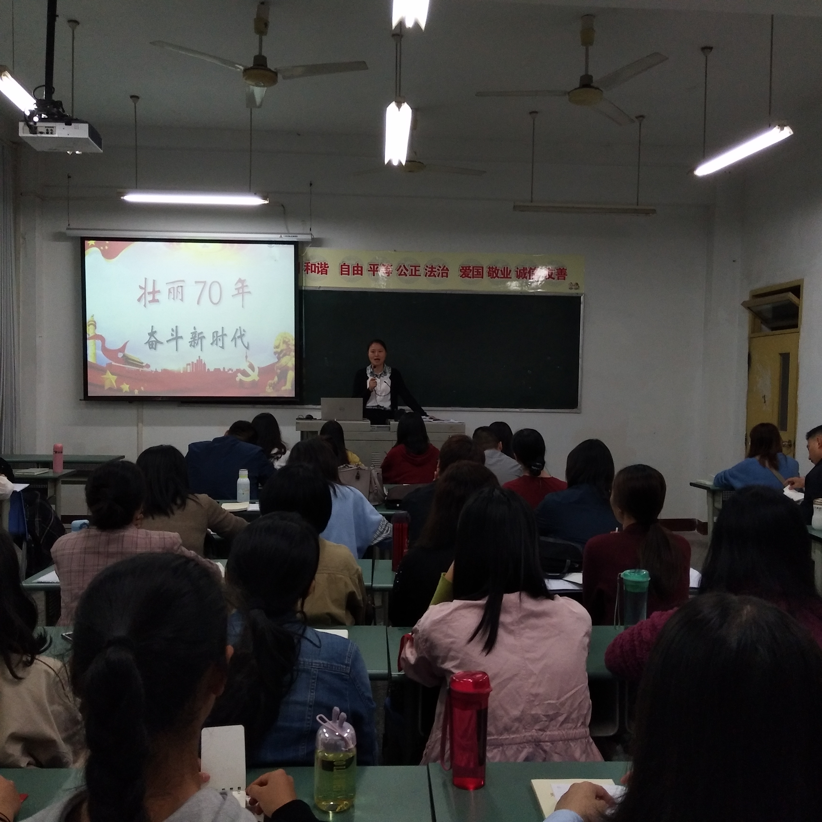10月9日下午,经济管理系党总支举行“不忘初心、牢记使命”主题教育。经济管理系全体教师和学生党员参加学习。学习活动中,经济管理系党总支副书记张晋作了“壮丽70年,奋斗新时代”的主题讲座。讲座以“艰辛探索 铸就辉煌历程”、“砥砺奋进 谱写壮丽诗篇”、“深刻启示 引领前行之路”三个篇章为指引,大家共同学习和回顾了新中国70年来各方面成长发展的宏图伟业。让我们认识到国家今天的强大是亿万中国人在中国共产党的领导下,艰苦创业、拼搏进取的结果,如今,中华民族伟大复兴的重任压在每一个中国人肩上,我们必须像前辈一样,不畏困难、勇敢进取,才能实现伟大的中国梦。