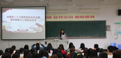 10月16日下午5时,经济管理系第二十九期党校暨第四期青马工程结业仪式和第三十期大学生业余党校暨第五期青年马克思主义培养工程开班仪式在实训楼A区206如期举行。学生党支部书记窦宇老师,团总支书记贾琳雁老师,系专职辅导员杜燕老师等多位老师出席了本次结业和开班仪式。
